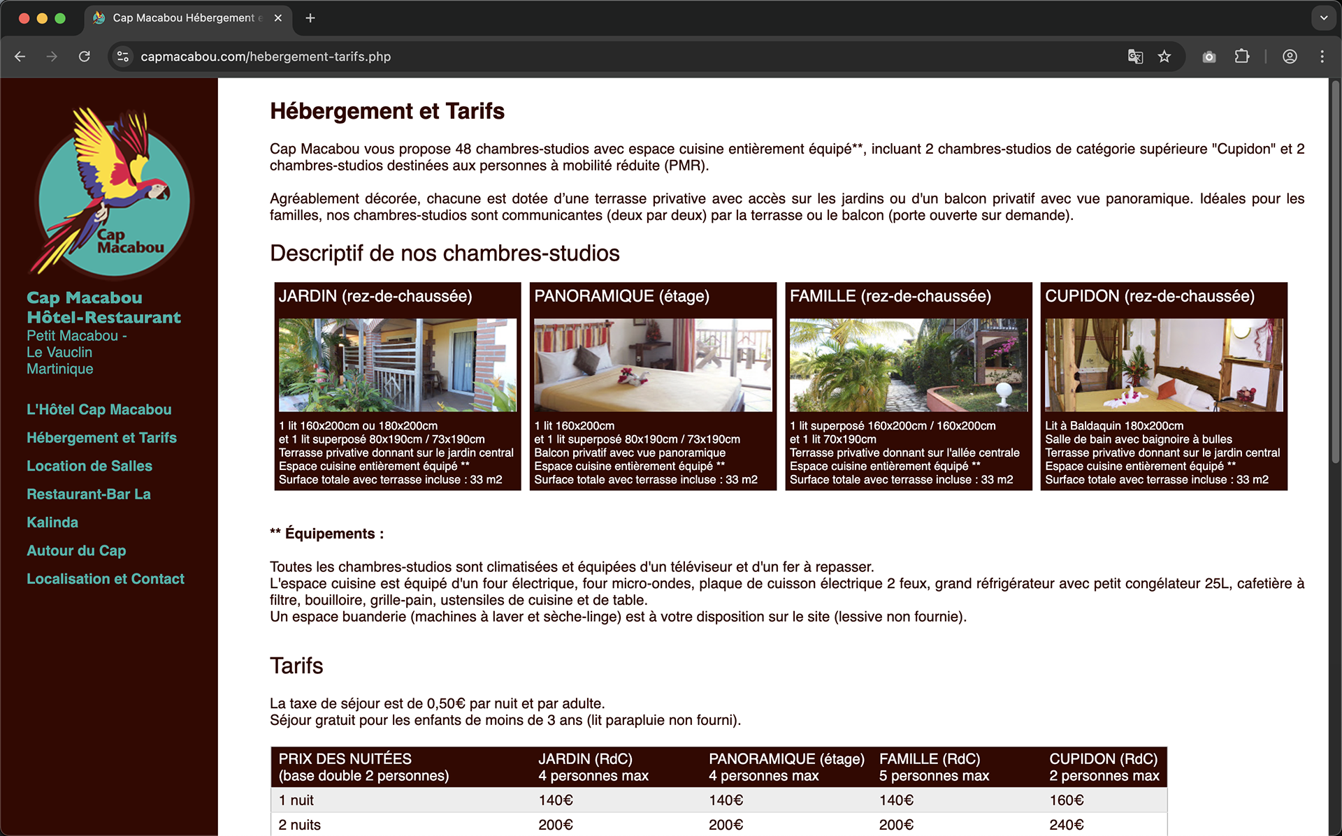 Website design and publication for www.capmacabou.com